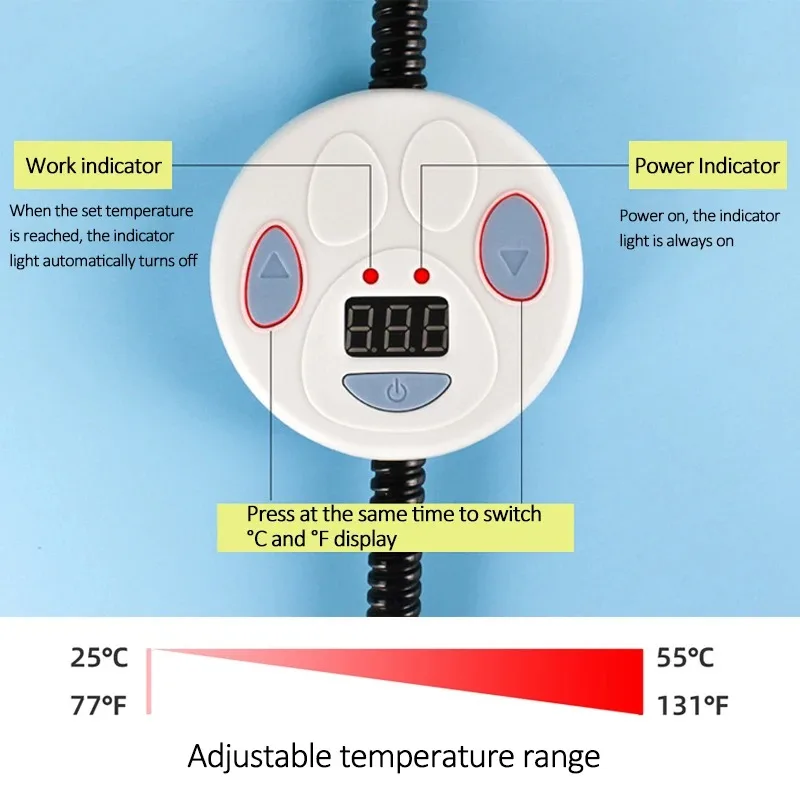3.Fast Heating: Reach the set temperature in three minutes.Celsius and Fahrenheit can be converted from each other.